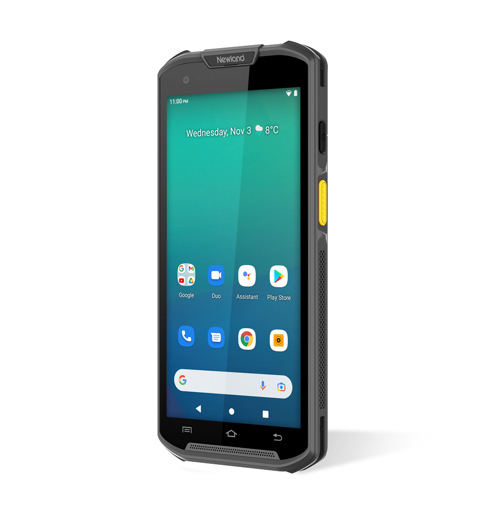 MT9300 Megattera Standard Plus Mobile Computer with 5.5" touchscreen, Straight Shooter, 2D CMOS Mega Pixel imager with Laser Aimer (CM66), 4GB/64GB, BT, WiFi6E, 4G, GPS, NFC and Camera. Incl. protective case, USB-C cable, battery, screen protector, hand strap, and multiplug adapter.